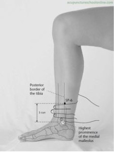 Spleen 6 or SanYinJiao (Three Yin Intersect) is a very good point to nourish blood and yin, also very commonly used for all gynecological issues. The name comes from the three meridians that all cross at this point, Spleen 6 not only connects to the Spleen but also the Liver and the Kidneys.