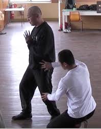 Once the feet are in place we distribute the weight into the feet. Again here we have a choice, within this style we can place 70% of our weight into the front leg and 30% into to the back. However, within the Huang Xiang Xian lineage the weight is distributed almost 50-50 with just a little more in the front leg. Personally I prefer the second approach, its far easier to develop root with a 50-50 stance and it prevents the knee from going over the toes, something than can happen in a 70-30 stance if we are not careful. Opposite we can see a picture of Wee Kee Jin in a more 50-50 stance for comparison.